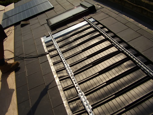 This method avoids wasting slate or tiles in the case of a re-roof or new build, and also keeps the roof weight to a minimum. There will be no future problems of loose or damaged tiles underneath the modules, and any future re-roofing can be done around the PV array without needing to dismantle it.